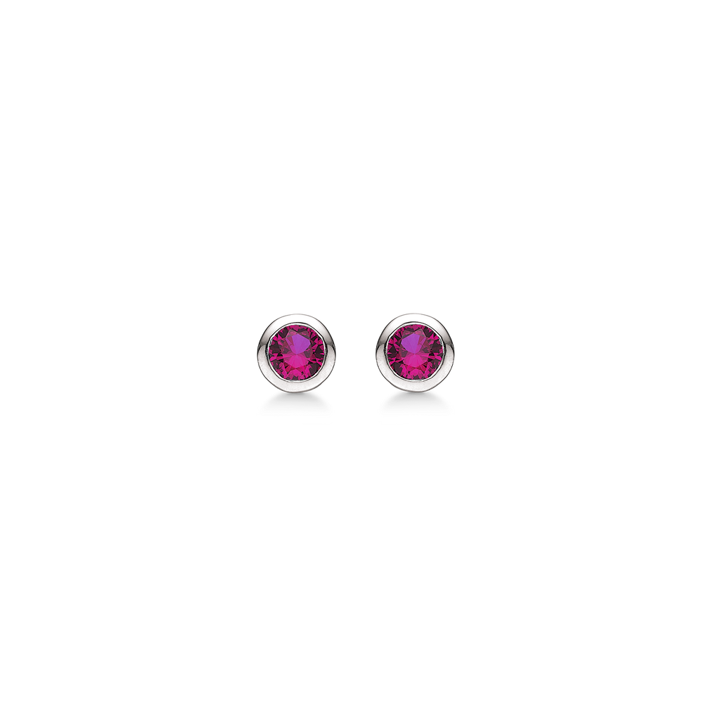 Sølv ørestikker rhodineret rund syntetisk rubin